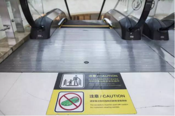 一些商場電梯旁也標有警示,不允許穿洞洞鞋上電梯。