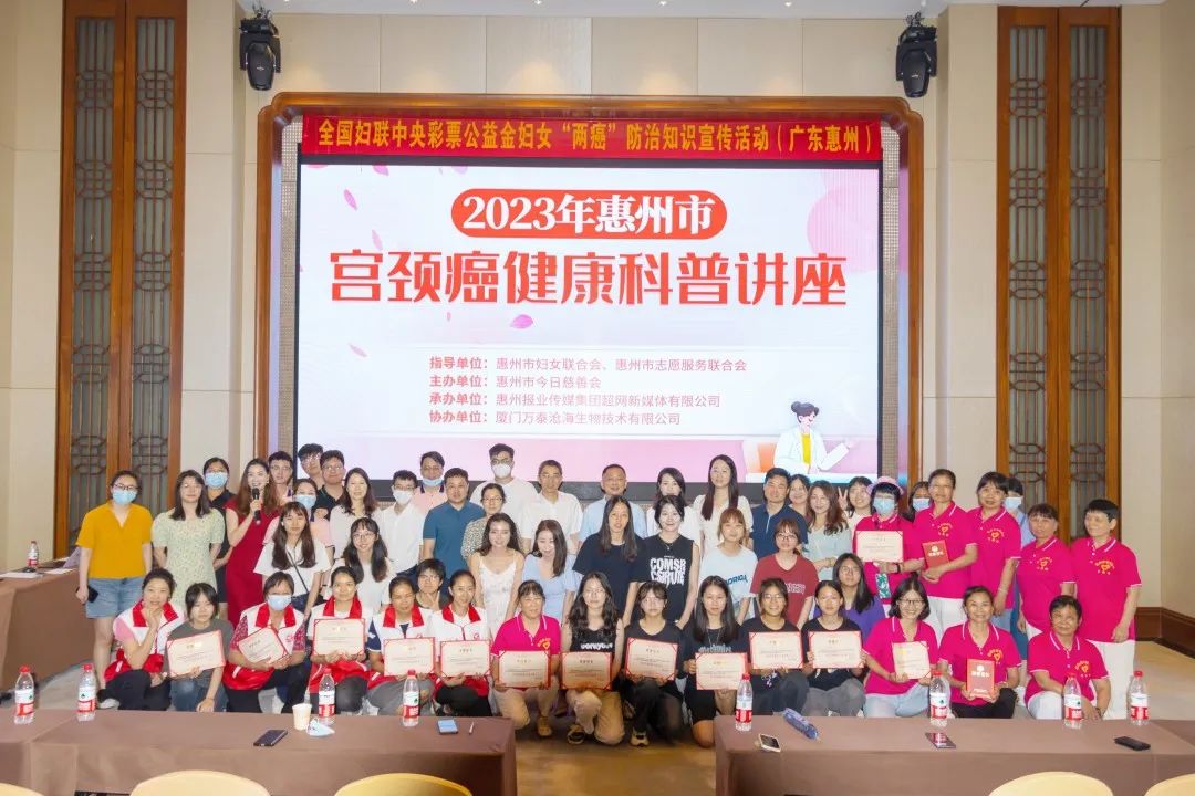 為做好面向社會各個年齡層人群和家庭的健康宣傳、預防、治療和關愛等方面工作,5月20日上午,2023年惠州市宮頸癌健康科普講座在惠州中海湯泉酒店沁園春會議室舉辦,活動由惠州市婦女聯(lián)合會、惠州市志愿服務聯(lián)合會指導,惠州市今日慈善會主辦,惠州報業(yè)傳媒集團超網(wǎng)新媒體有限公司承辦,廈門萬泰滄海生物技術有限公司協(xié)辦,活動吸引近100人現(xiàn)場參與。