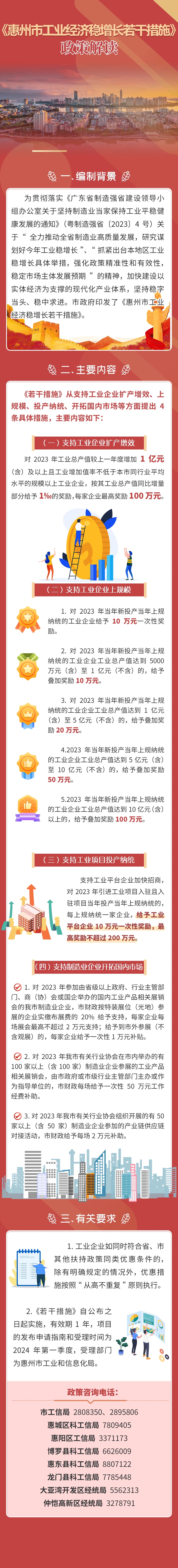惠州日?qǐng)?bào)訊 (記者謝寶樹(shù) 通訊員何立)支持政策再“加碼”!5月23日,惠州出臺(tái)《惠州市工業(yè)經(jīng)濟(jì)穩(wěn)增長(zhǎng)若干措施》(以下簡(jiǎn)稱“《若干措施》”),從支持工業(yè)企業(yè)擴(kuò)產(chǎn)增效、支持工業(yè)企業(yè)上規(guī)模、支持工業(yè)項(xiàng)目投產(chǎn)納統(tǒng)、支持制造業(yè)企業(yè)開(kāi)拓國(guó)內(nèi)市場(chǎng)等4個(gè)方面精準(zhǔn)施策,真金白銀推動(dòng)工業(yè)經(jīng)濟(jì)穩(wěn)增長(zhǎng)。