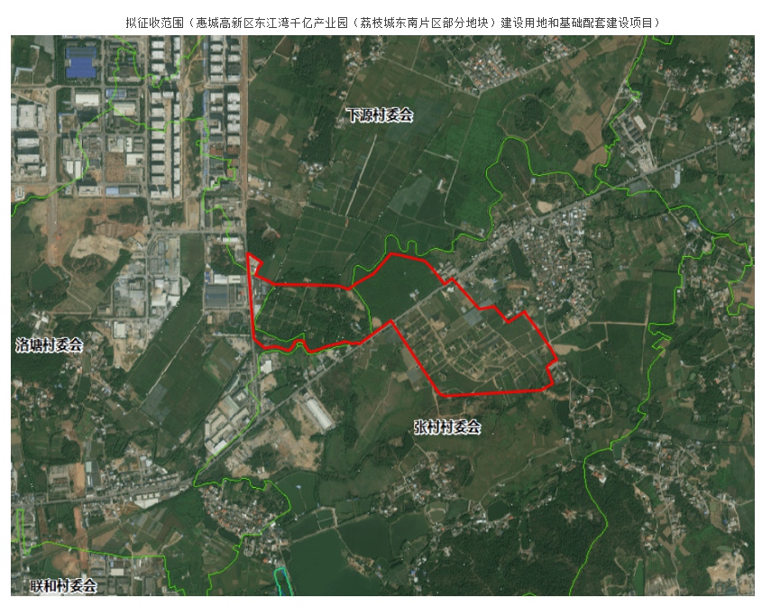 惠城高新區(qū)東江灣千億產業(yè)園(荔枝城東南片區(qū)部分地塊)建設用地和基礎配套建設項目土地預征收