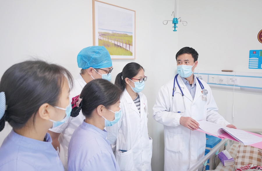 徐峰主任(右一)帶領(lǐng)醫(yī)護(hù)人員查房;葜萑?qǐng)?bào)記者周楠 攝