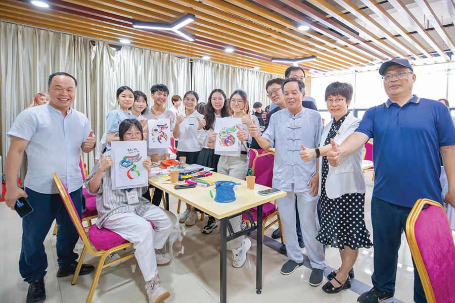 交流團(tuán)在惠州學(xué)院參與“情牽惠港澳 共繪錦繡圖”惠港澳高校青年龍門農(nóng)民畫交流體驗(yàn)活動(dòng)。
