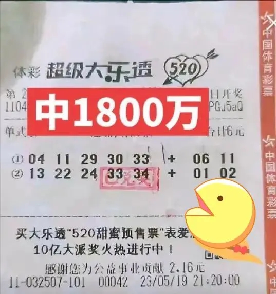 5月20日,體彩超級(jí)大樂透第23056期開獎(jiǎng),也是超級(jí)大樂透10億大派獎(jiǎng)第18期開獎(jiǎng),位于惠州博羅縣戴屋小組小羅路282號(hào)的4411032507體彩實(shí)體店中出一張2注號(hào)碼、6元投入的單式追加票,獎(jiǎng)金1800萬元,可惜由于單張彩票投注金額低于15元,白白錯(cuò)失了瓜分每期1500萬元派獎(jiǎng)獎(jiǎng)金的機(jī)會(huì)。