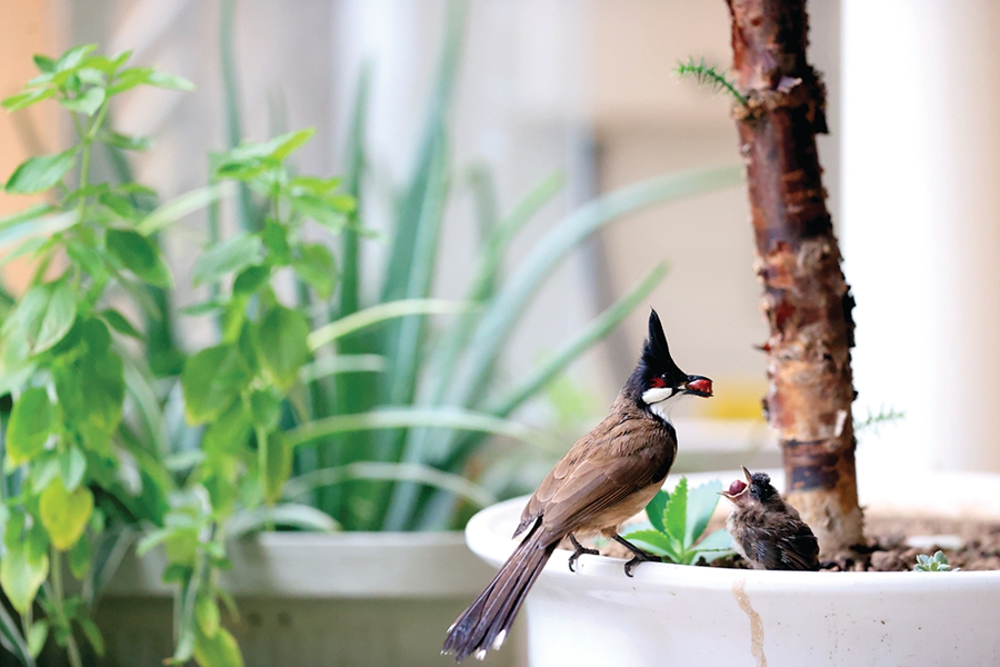 惠報記者跟蹤拍攝近一個月,記錄了紅耳鵯筑巢民宅育兒的日常