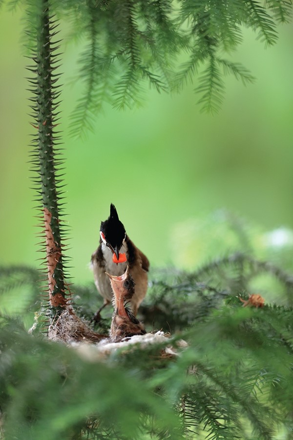 紅耳鵯在孵化鳥蛋,期待新生命的誕生。