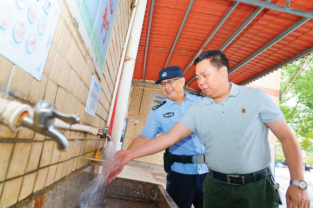 去年8月,練智鵬帶隊巡邏至學校附近時,正逢學生放學,學校門口各類車輛亂停亂放,學生穿行其中險象環(huán)生!斑@樣不行,太不安全。”練智鵬馬上走進學校了解情況,可剛跨進校門,一股惡臭便迎面撲來。