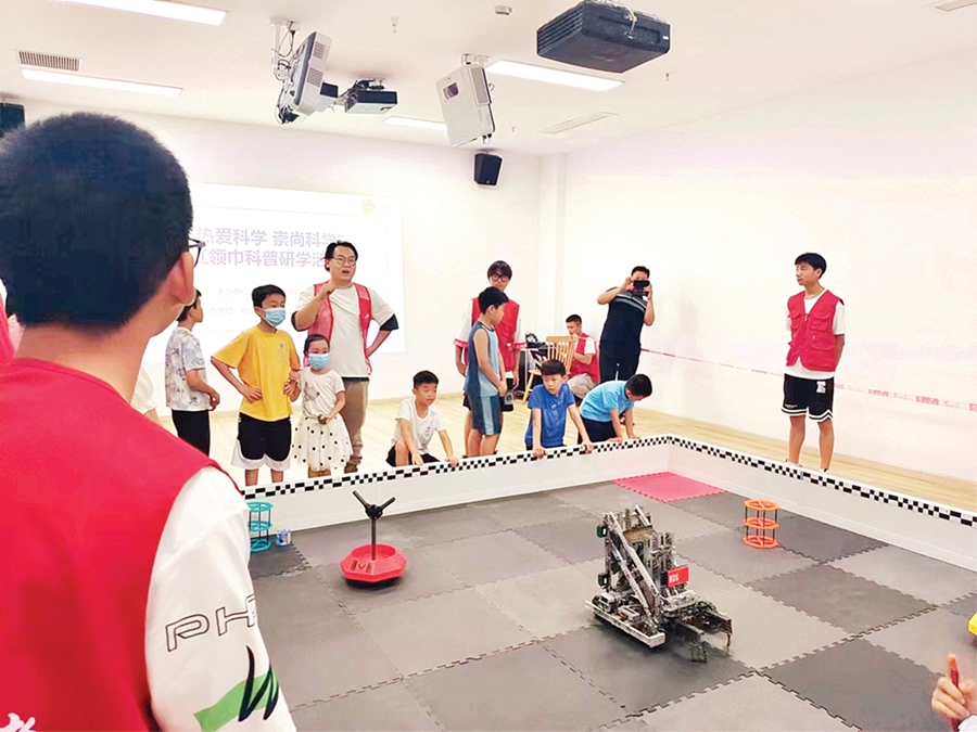 在博羅縣新時(shí)代文明實(shí)踐中心,少先隊(duì)員參加“熱愛科學(xué) 崇尚科學(xué)”紅領(lǐng)巾科普研學(xué)活動(dòng)。