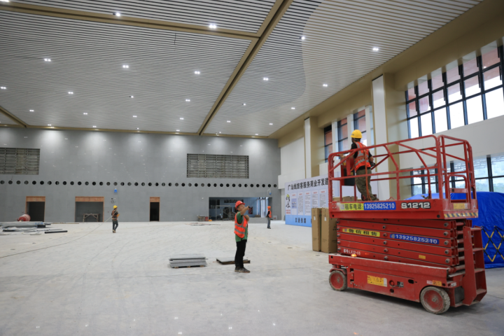 已經(jīng)進(jìn)入收尾工程的羅浮山站候車大廳。