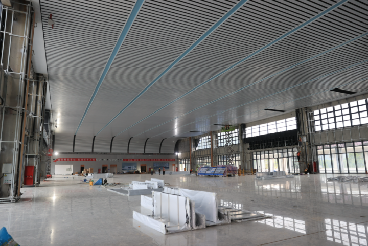 候車大廳內(nèi)部裝修已近尾聲。