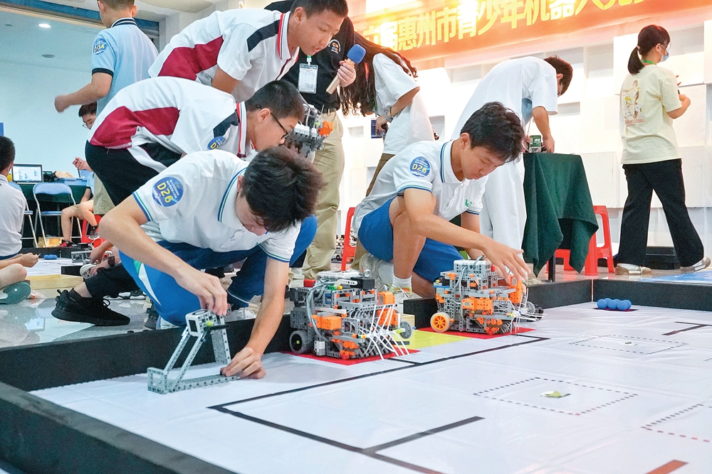 惠州市青少年機(jī)器人競賽現(xiàn)場,參賽選手用智慧碰撞出科技火花。