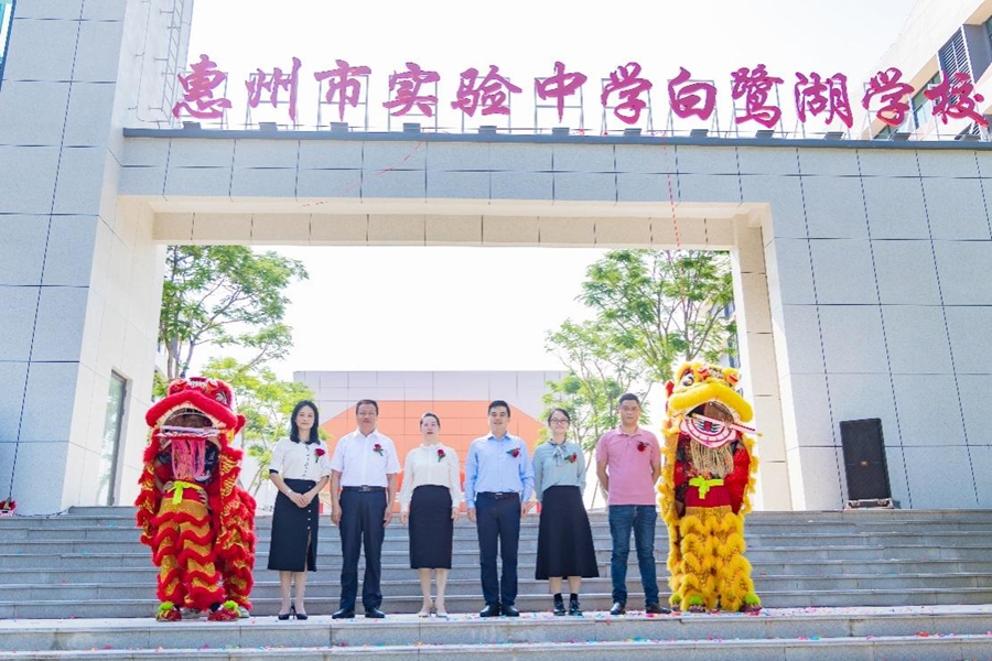 隨后,在精彩的舞獅表演中,到場嘉賓為惠州市實驗中學(xué)白鷺湖學(xué)校揭下面紗,并前往校園參觀,點贊學(xué)校齊全完備的設(shè)施設(shè)備。至此,惠州市實驗中學(xué)白鷺湖學(xué)校揭牌儀式圓滿結(jié)束!