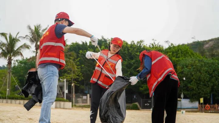 大亞灣石化園區(qū)黨員志愿者清理海灘。惠州日報記者匡湘鄂攝