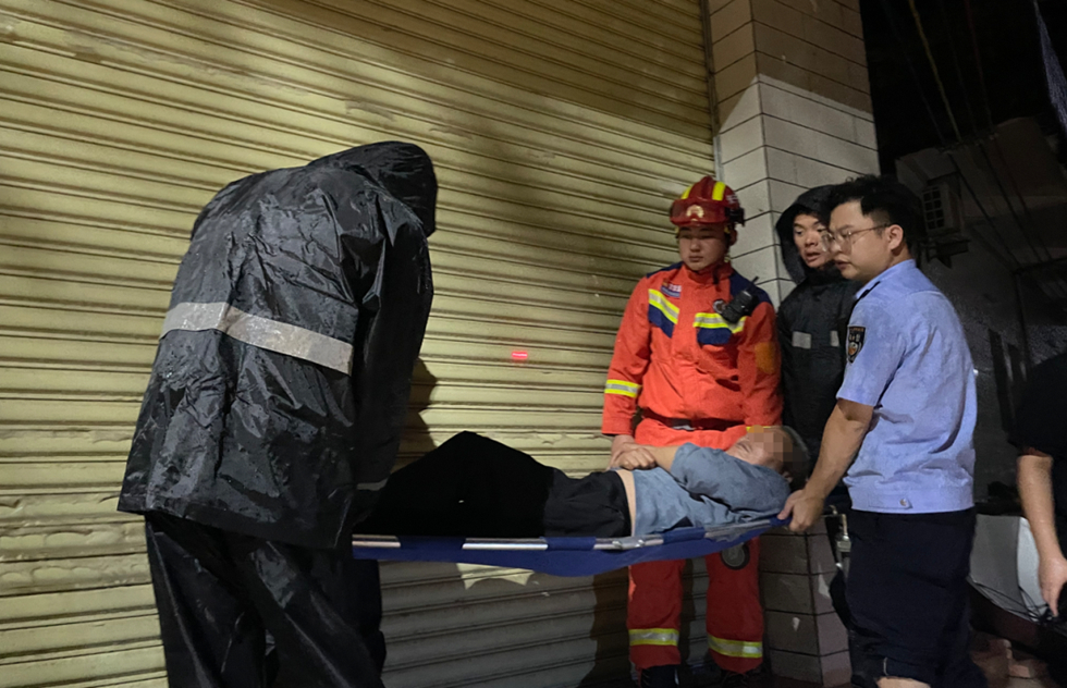 在當(dāng)?shù)嘏沙鏊窬瘏f(xié)助下,消防員克服惡劣天氣和燈光照明不足、雨水暴漲等困難,經(jīng)過半小時(shí)緊急救援,成功將老人轉(zhuǎn)移至安全地帶。