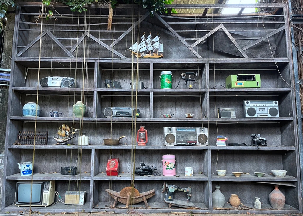 “潛珍閣”利用老船廠遺留的柱、梁、建筑基礎(chǔ)打造成新的公共空間,輪機(jī)車間成為了品茗交流之處,鑄造車間變成了工藝品展覽室——鍋碗瓢盆、桌椅板凳床、琴棋書(shū)畫(huà)、炊具農(nóng)具,各式小家電,還有花轎、食格、盒籮等惠州民間舊式婚嫁習(xí)俗物品等,各種各樣的老物件,看似雜亂堆疊實(shí)則頗有心思組合,令人目不暇接。市民游客穿行其中,每個(gè)人都能在這里找到有關(guān)童年、成長(zhǎng)的打開(kāi)方式。這里經(jīng)常有收藏“發(fā)燒友”來(lái)交流,也吸引了不少文化人士來(lái)參觀。