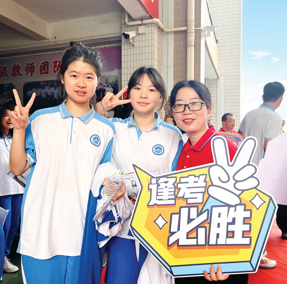 惠州市綜合高級(jí)中學(xué)的老師們身穿紅色衣服,手拿祝福標(biāo)語(yǔ),為考生們送考,為他們加油鼓勁;輬(bào)全媒體記者姜?jiǎng)庞?涂堅(jiān) 通訊員張培 攝