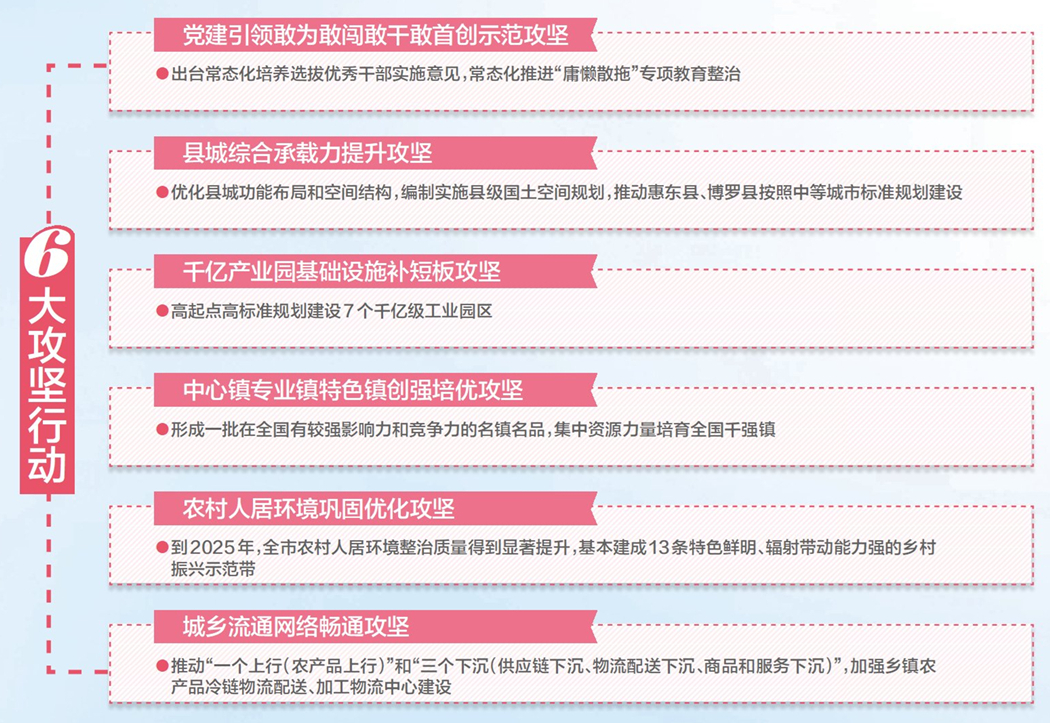 成立5個專班、實施六大攻堅行動、深入基層開展調(diào)研……今年以來,惠州深入學習貫徹習近平總書記視察廣東重要講話、重要指示精神,全面落實省委工作部署,舉全市之力高標準推進“百千萬工程”各項工作,實現(xiàn)快速起步和良好開局。