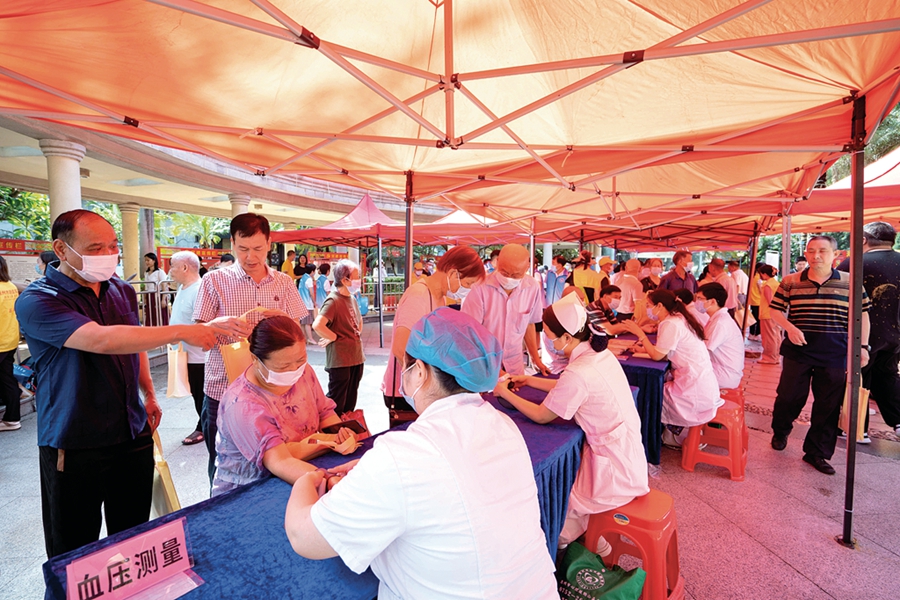 “阿叔,請(qǐng)問您有什么健康問題需要咨詢?”“來這邊,我給您檢查一下。”……惠城區(qū)橋西黨建文化廣場(chǎng)作為活動(dòng)主會(huì)場(chǎng),很快吸引了一大批社區(qū)群眾和退役軍人及家屬前來咨詢和問診。其他六個(gè)分會(huì)場(chǎng)醫(yī)療義診活動(dòng)也得到了社區(qū)群眾的歡迎和普遍好評(píng)。據(jù)統(tǒng)計(jì),共有1500多名群眾參加義診,進(jìn)一步提高了自身的健康意識(shí);葜菔械诙嗣襻t(yī)院、中信惠州醫(yī)院、惠州市種德慈善會(huì)、方舟健康體檢、李飛口腔門診部、愛爾眼科及各縣(區(qū))相關(guān)醫(yī)療機(jī)構(gòu)80多名醫(yī)護(hù)人員志愿者和68名戰(zhàn)旗志愿服務(wù)隊(duì)隊(duì)員參加活動(dòng)。
