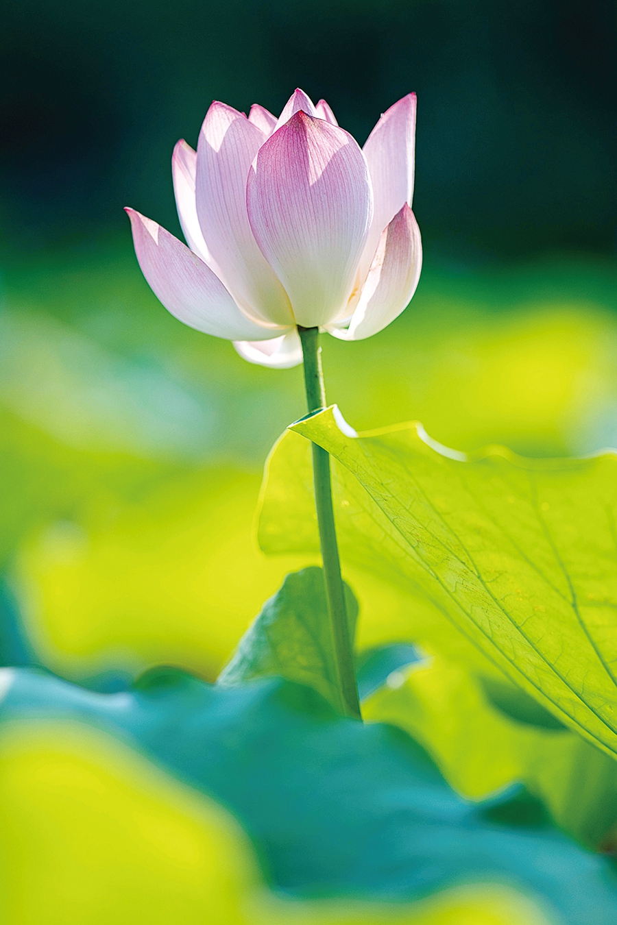 豐渚園種植的太空蓮一葉一花,非常別致。