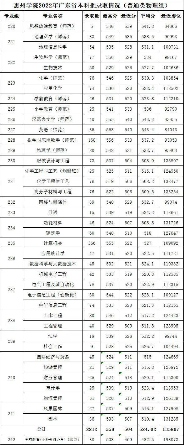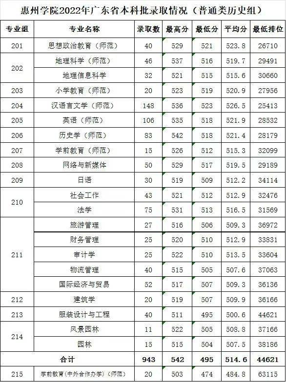 此外,惠州學院還公布了2022年本科批次的錄取分數(shù)線。