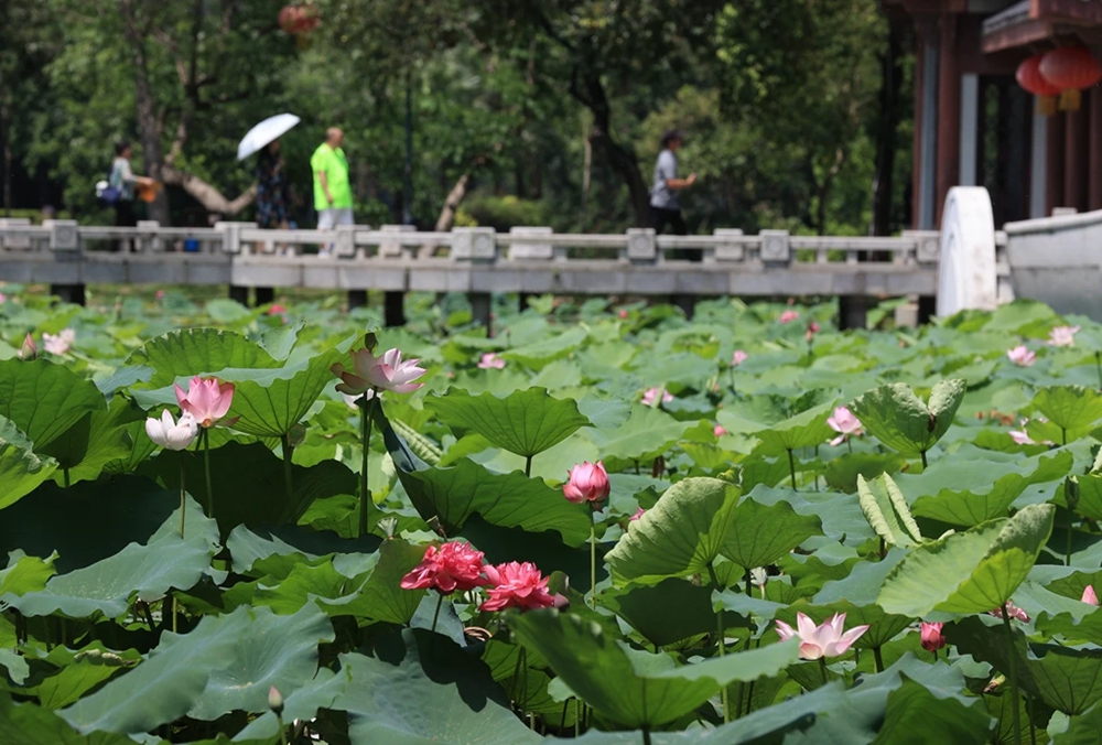 夏日荷花這道美麗的風景線讓市民趨之若鶩。