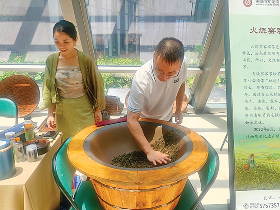 工作人員在展示制茶技藝。惠州日?qǐng)?bào)記者龔妍 譚琳 通訊員袁學(xué)歡 攝