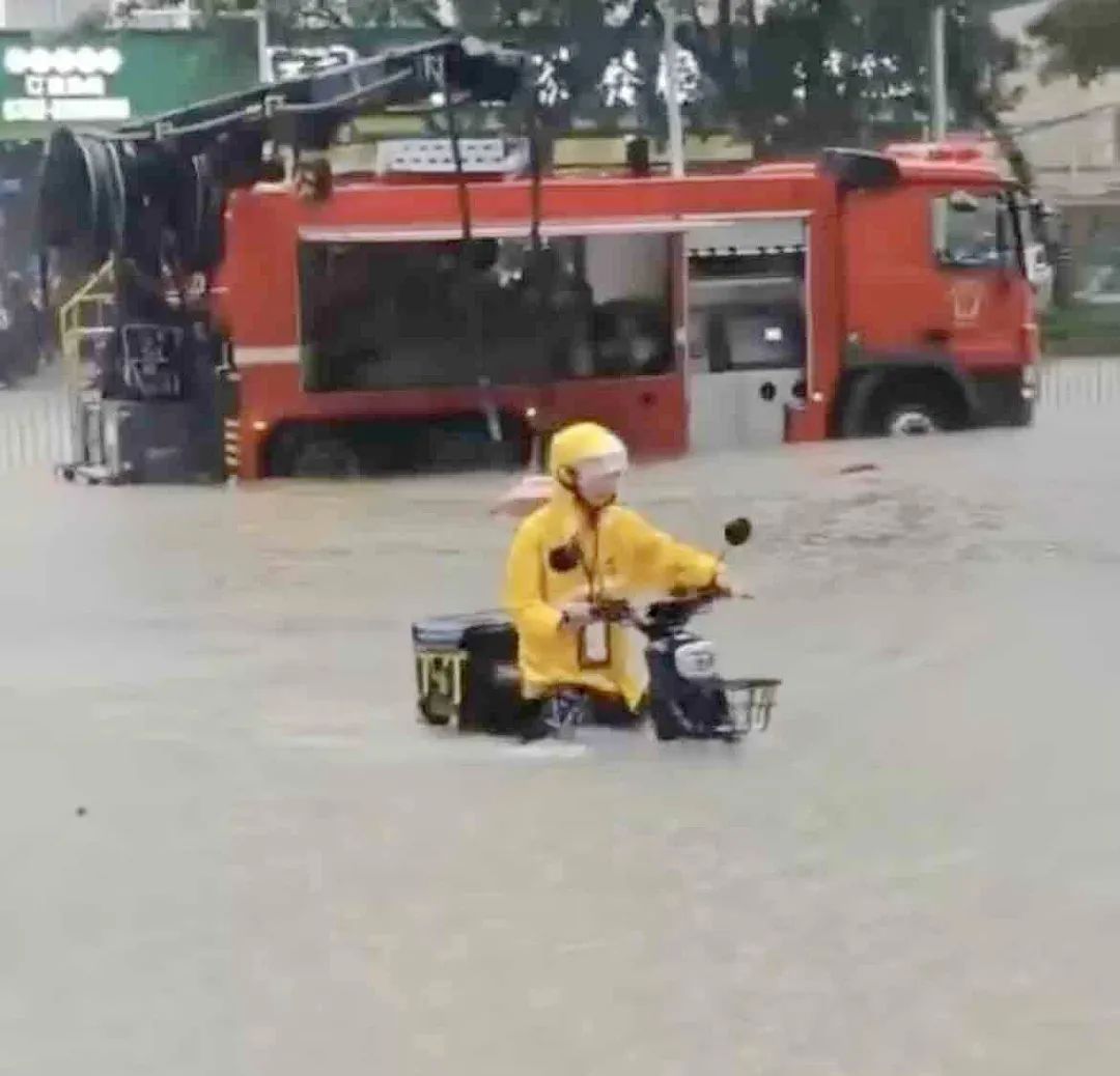 外賣小哥電動車都被淹了一半