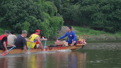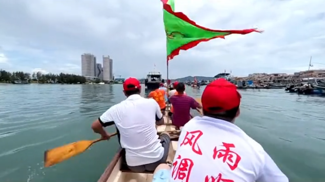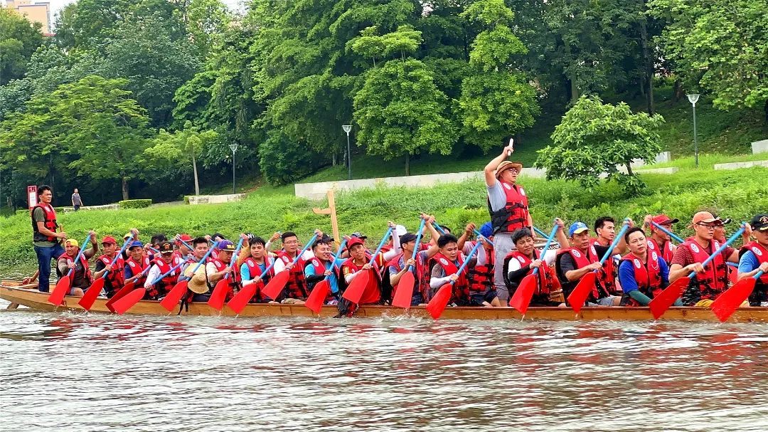 儀式過后,隨著陣陣鑼鼓聲和鞭炮聲,寮仔村隊員登上龍舟,隊員們精神抖擻,動作整齊劃一,高喊口號努力劃槳。