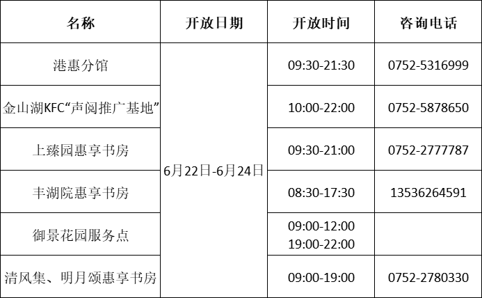 注:端午節(jié)期間因惠州體育館(A、C館)舉辦大型賽事活動,22日下午開始暫停對外開放: