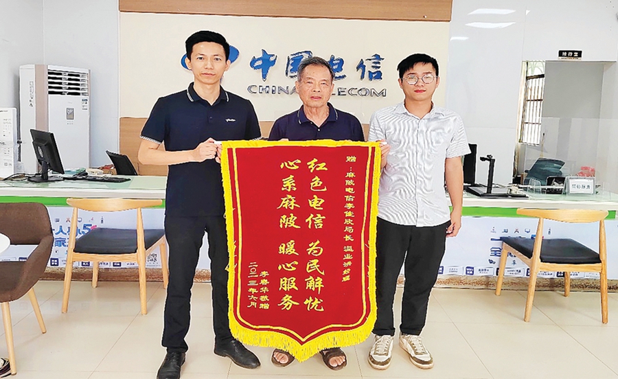 惠州日報訊 (記者譚琳 通訊員徐廣道)最近,在博羅縣麻陂鎮(zhèn)曲潭村,村民李春華特意把寫著“紅色電信 為民服務(wù) 心系麻陂 暖心服務(wù)”的錦旗送到中國電信博羅分公司麻陂營銷中心,并連聲感謝工作人員:“太感謝你們了,幫我追回了家里的生活費!”