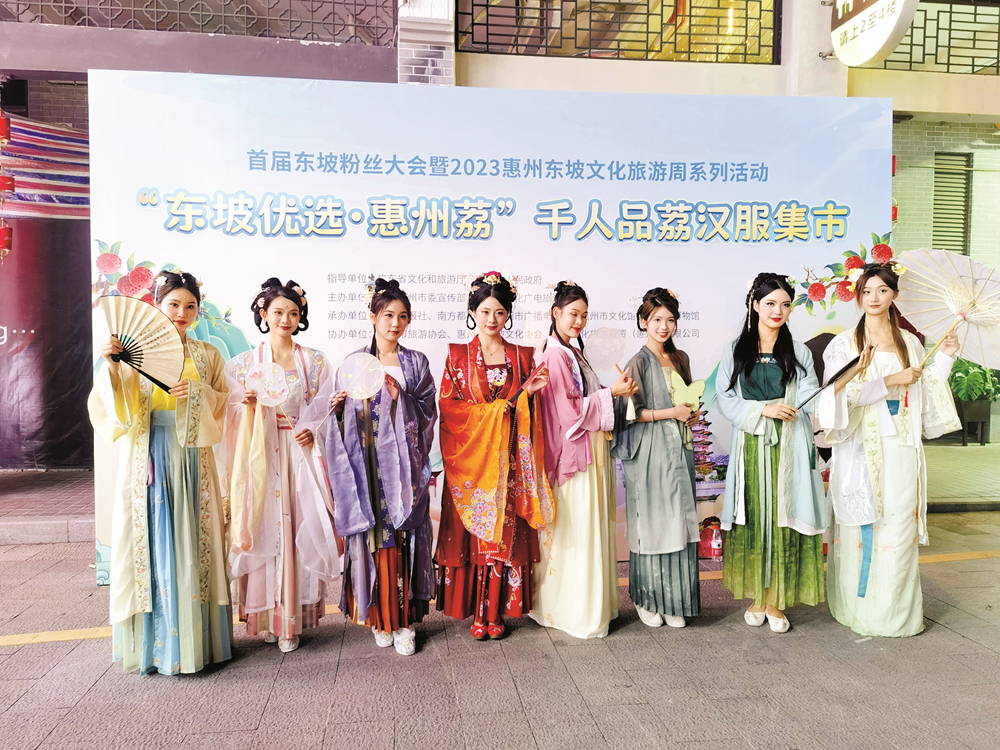 除了荔枝,千名“佳人”漢服“大秀”更是讓人大飽眼福。華麗的漢服扮相和水東街古色古香的建筑風(fēng)格相得益彰,讓人仿佛穿越千年時(shí)光重返東坡的時(shí)代!斑@里的漢服真是美得令人驚艷!我看到了那么多不同款式的漢服,感覺(jué)自己仿佛穿越了。”游客陳女士表示,通過(guò)這場(chǎng)漢服“大秀”她充分感受到了中國(guó)傳統(tǒng)文化的獨(dú)特魅力,希望能夠更深入了解東坡文化和惠州的歷史。