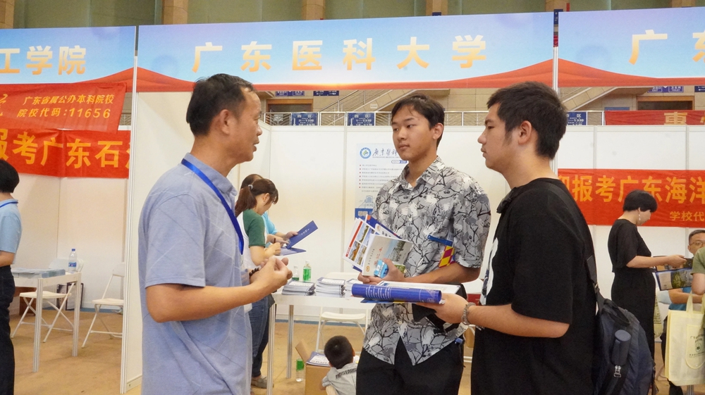 作為惠州本土本科院校,惠州學院在本次高招會開設了兩個展位接受家長和考生咨詢。惠州學院經(jīng)濟管理學院物流系主任付瑋瓊介紹,今年學校本科招生總計劃5600人,比去年增加1450人,其中普高招生計劃5297人,省內(nèi)計劃招收4751人!艾F(xiàn)場咨詢教師專項招生(公費定向)以及學校一些熱門專業(yè)的家長和考生比較多!备冬|瓊說,惠州學院還將于6月24日至29日舉行校園開放周活動。