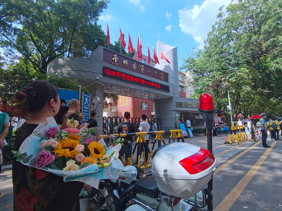 2022年6月,家長(zhǎng)手捧鮮花等孩子出考場(chǎng)。今日惠州網(wǎng)資料圖