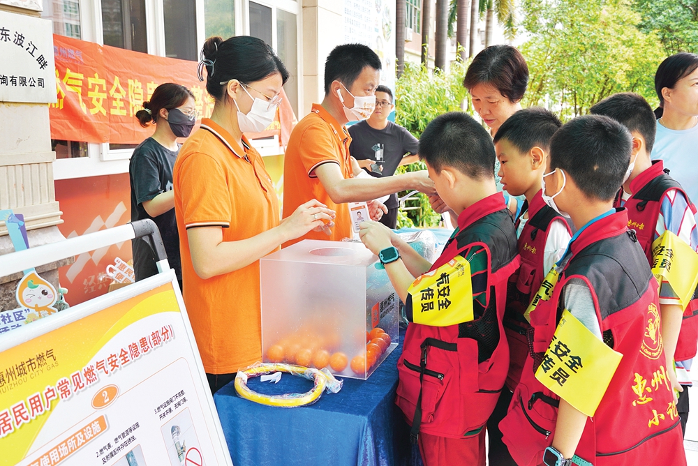 惠報(bào)小記者宣傳燃?xì)獍踩R(shí);葜萑?qǐng)?bào)記者徐園連 姜?jiǎng)庞?蘇凌奕 攝