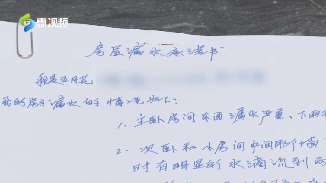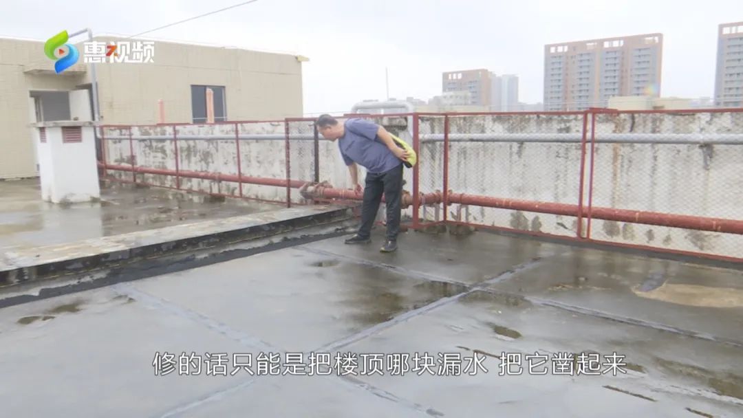 “師傅說(shuō)補(bǔ)上也沒(méi)用,上面(漏水)不給你修,你補(bǔ)灰沒(méi)用。修的話把樓頂漏水部分把它鑿起來(lái),中間給打上防水材料,搞完然后把它封上才可以。我們業(yè)主自己搞不了。”
