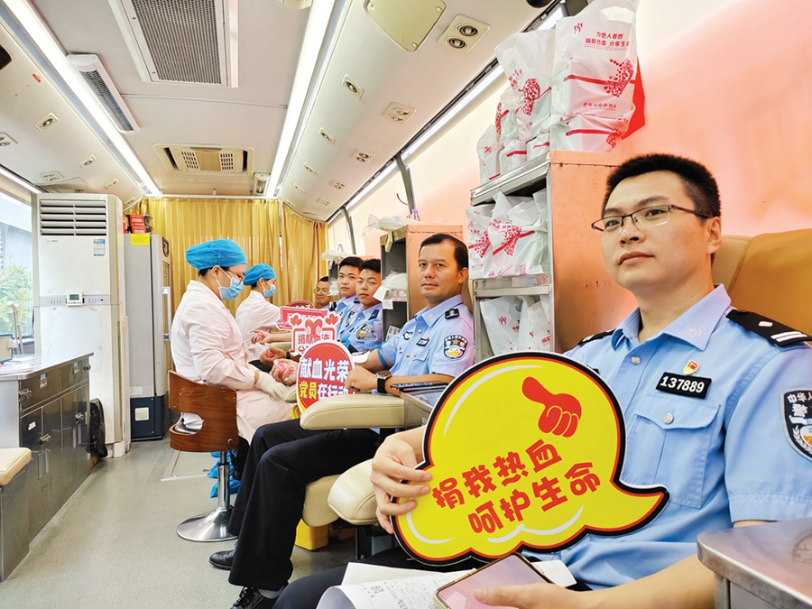 “作為一名黨員,只要群眾需要,我們就要沖鋒在前,無償獻(xiàn)血就是這樣一件很有意義的事,我們義不容辭!”市公安局治安管理支隊黨員民警踴躍獻(xiàn)血。