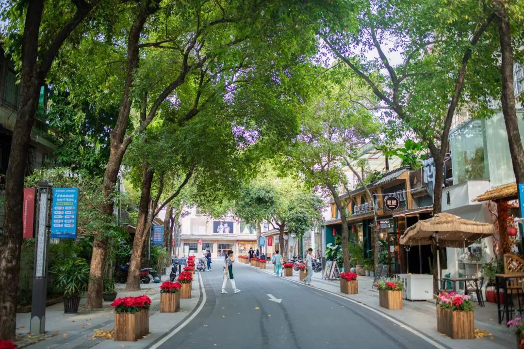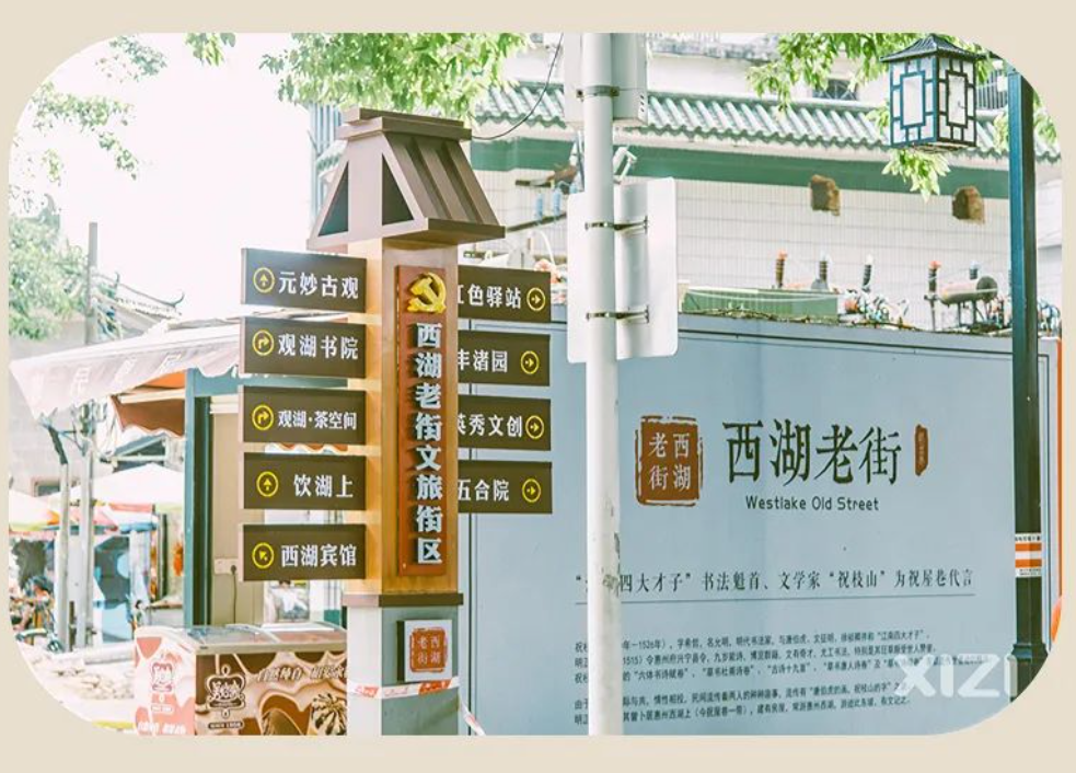 在祝屋巷的兩旁遍布著許多好玩有趣的文創(chuàng)商鋪與美食商鋪,新舊結(jié)合的建筑風(fēng)格、充滿設(shè)計(jì)感的各種文化墻,搭配路旁的綠樹(shù)與湖邊的美景,真可謂如詩(shī)如畫(huà)。