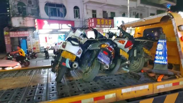 無獨有偶,6月27日20時許,根據(jù)前期對“鬼火”的行駛時段、路線及集結(jié)點等規(guī)律的摸排,惠州市公安局交警支隊江北大隊組織警力兵分兩組,一組警力在柏崗周邊路段蹲點伏擊,一組警力在惠州大道流動巡邏,兩組警力通過對講機(jī)交流緊密配合,于20時20分許在惠州大道與柏崗路交叉路口查獲涉飆人員4名及4輛“鬼火”摩托車。