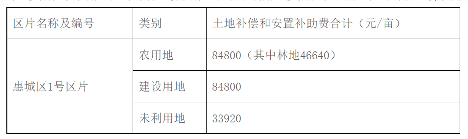 土地補(bǔ)償費(fèi)和安置補(bǔ)助費(fèi)按《惠州市人民政府關(guān)于公布實(shí)施征收農(nóng)用地區(qū)片綜合地價(jià)的公告》(惠府公〔2021〕4號(hào))規(guī)定的惠城區(qū)1號(hào)區(qū)片綜合地價(jià)標(biāo)準(zhǔn)執(zhí)行。