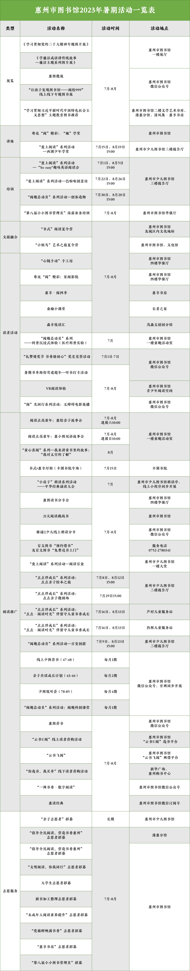 2023年暑假如期而至,為深入推進(jìn)全民閱讀工作,滿足讀者多元化的文化需求,惠州市圖書館將開啟暑期“炫閱模式”,精心準(zhǔn)備56項(xiàng)共170場閱讀推廣活動(dòng),靜待廣大市民過來品書香、覓清涼。