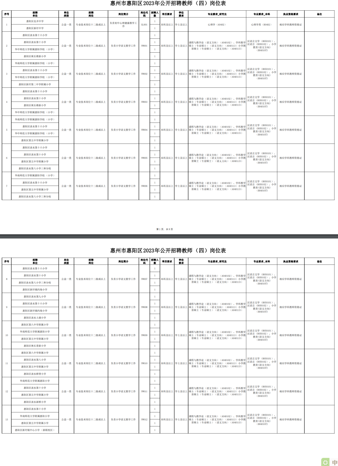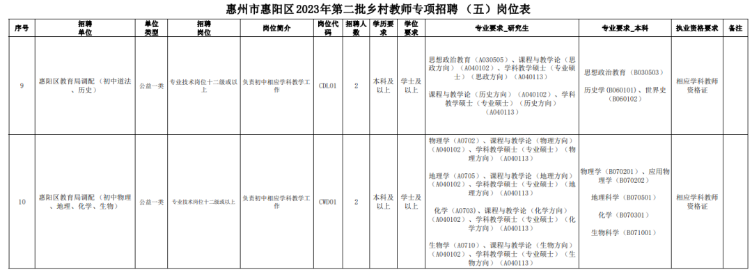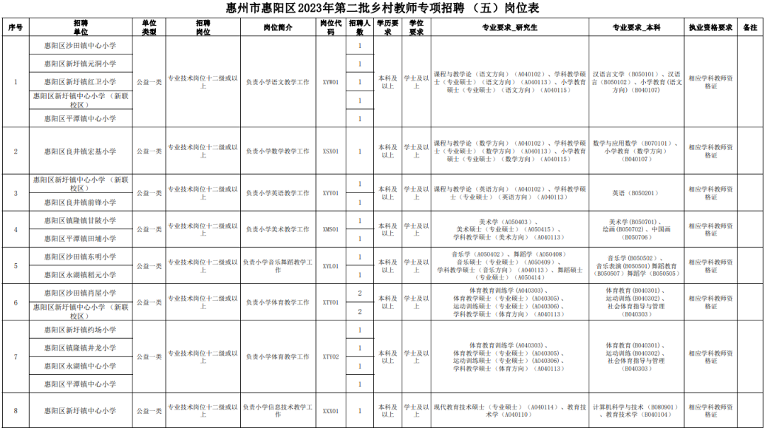 惠州市惠陽區(qū)2023年第二批鄉(xiāng)村教師專項(xiàng)招聘