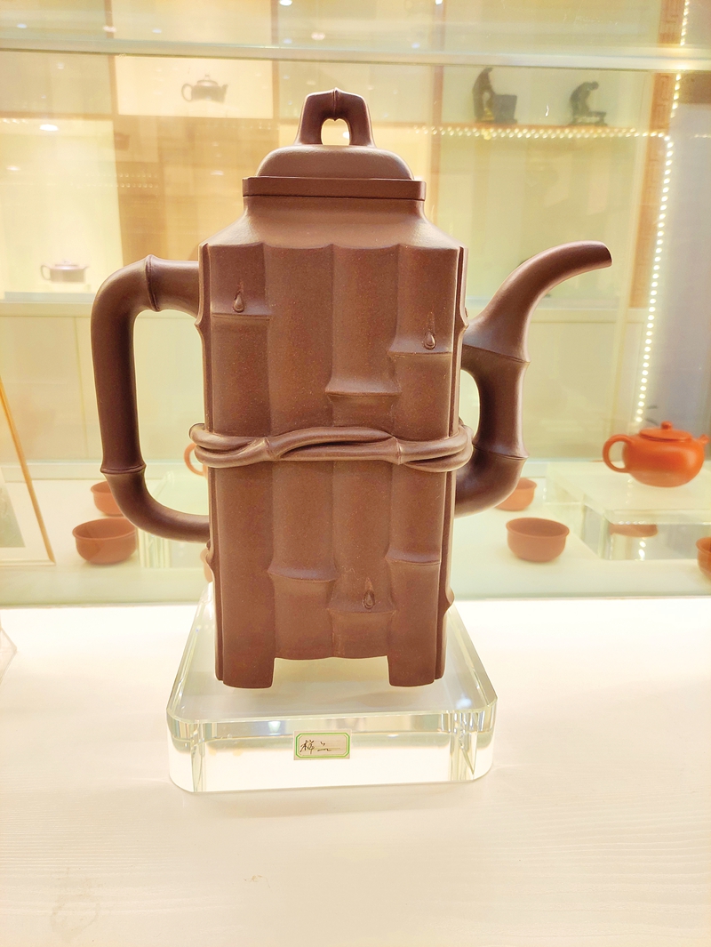 穿越巷道,走入進(jìn)德堂壺藝制作中心紫砂壺展廳,猶如闖入一個(gè)藝術(shù)世界,各式紫砂壺琳瑯滿目,就像一個(gè)個(gè)健美的“模特”,形態(tài)各異。