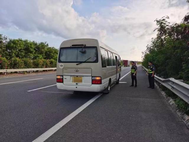 7月5日16時(shí)許,惠州市公安局交警支隊(duì)高四大隊(duì)接報(bào)警稱濟(jì)廣高速廣州方向K1839+500m處有一大巴車突發(fā)故障停在行車道上,該報(bào)警人是消防員。