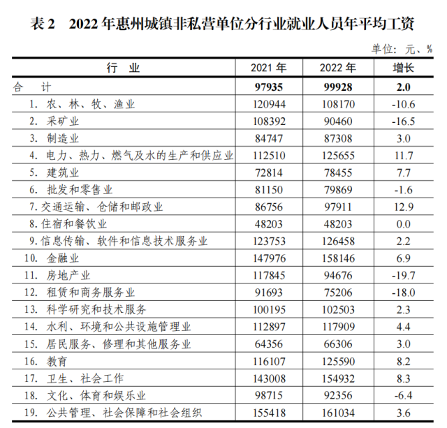 99928元!2022年惠州城鎮(zhèn)單位就業(yè)人員年平均工資出爐