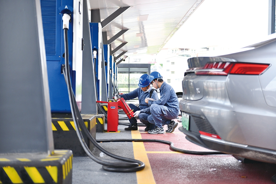 惠城供電局運維人員對望江綜合能源充電站消防設(shè)備進(jìn)行安全檢查。 陳凌 攝