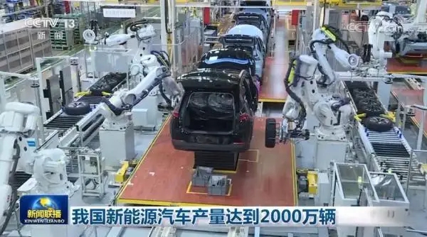 我國(guó)新能源汽車產(chǎn)量達(dá)到第2000萬(wàn)輛。圖片來(lái)源:央視新聞