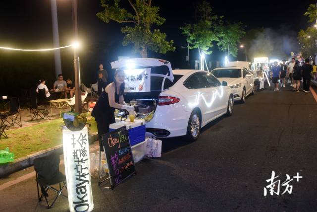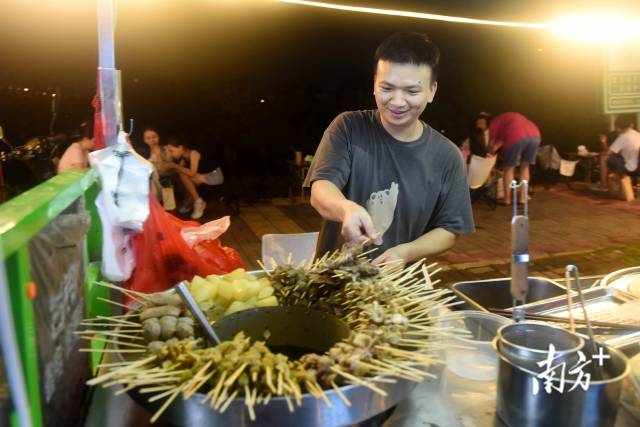 檸檬茶、燒烤攤、炸串攤等讓人目不暇接,不少市民晚上來此消遣,他們坐在江邊,點上一杯茶,或者再來份燒烤,和三五好友暢談至深夜。