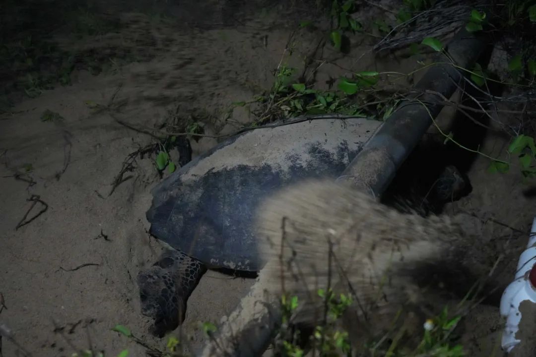 此次是這位海龜媽媽今年的第四次上岸,前三次來的都是后半夜,這次則是上半夜,而且間隔19天,大大超出二周產(chǎn)一次卵的時間。二周時間已過,當大家以為她可能產(chǎn)完卵不再上岸了,保護區(qū)的技術(shù)員始終沒有放棄,連續(xù)多日通宵等待,最終等來她的第四次上岸。