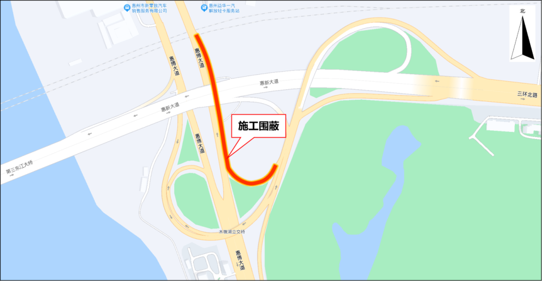 受影響車輛請通過三環(huán)北路掉頭繞行,或選擇惠州大道等道路繞行。