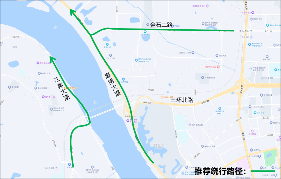 惠新大道、三環(huán)北路往博羅方向車輛建議選擇江南大道(超限車輛除外)、金石二路等道路繞行。