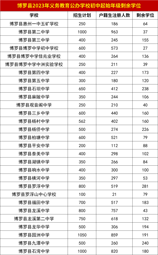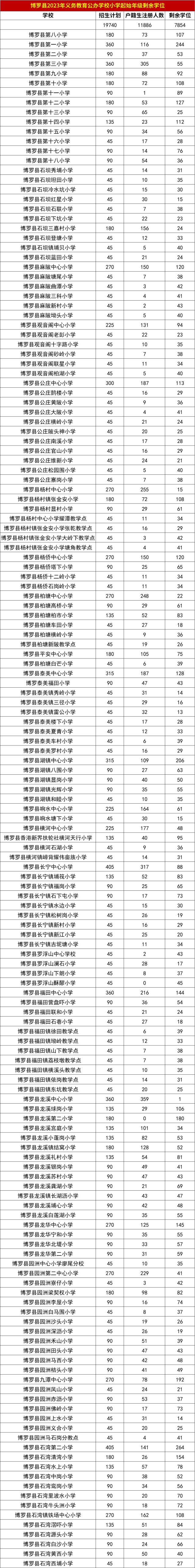 根據(jù)《博羅縣2023年義務(wù)教育招生入學(xué)工作指引》,7月8-9日已完成2023年義務(wù)教育公辦學(xué)校戶籍生注冊(cè)工作,現(xiàn)將各學(xué)校剩余學(xué)位向社會(huì)、家長(zhǎng)公布,請(qǐng)家長(zhǎng)、學(xué)生根據(jù)剩余學(xué)位情況選擇填報(bào)積分入學(xué)學(xué)校,每個(gè)參與積分學(xué)生可在同一鎮(zhèn)(街道)填報(bào)三所學(xué)校,其中第一志愿為居住地所在學(xué)區(qū)學(xué)校。